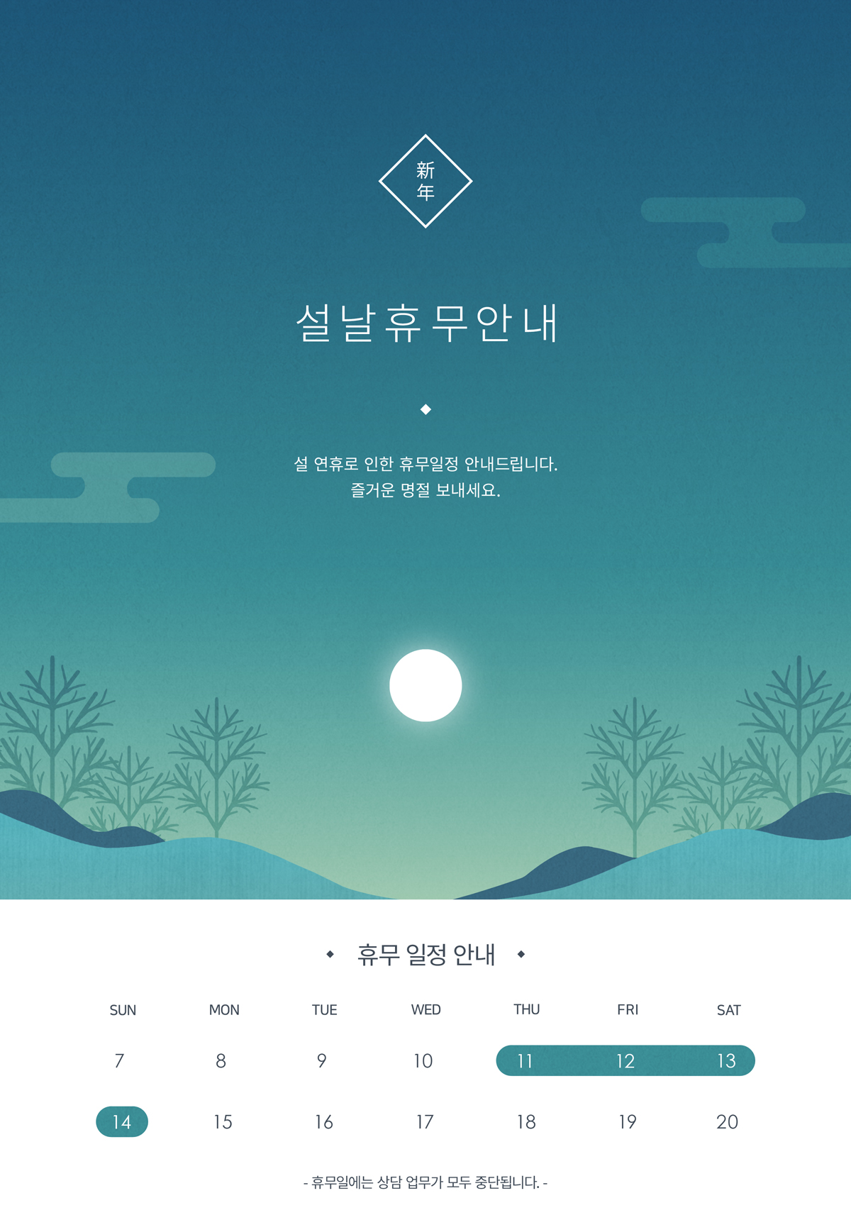 13 2024 ¼³¸íÀý ÈÞ¹«¾È³». °ü¸®ÀÚ 2024-02-07 1064